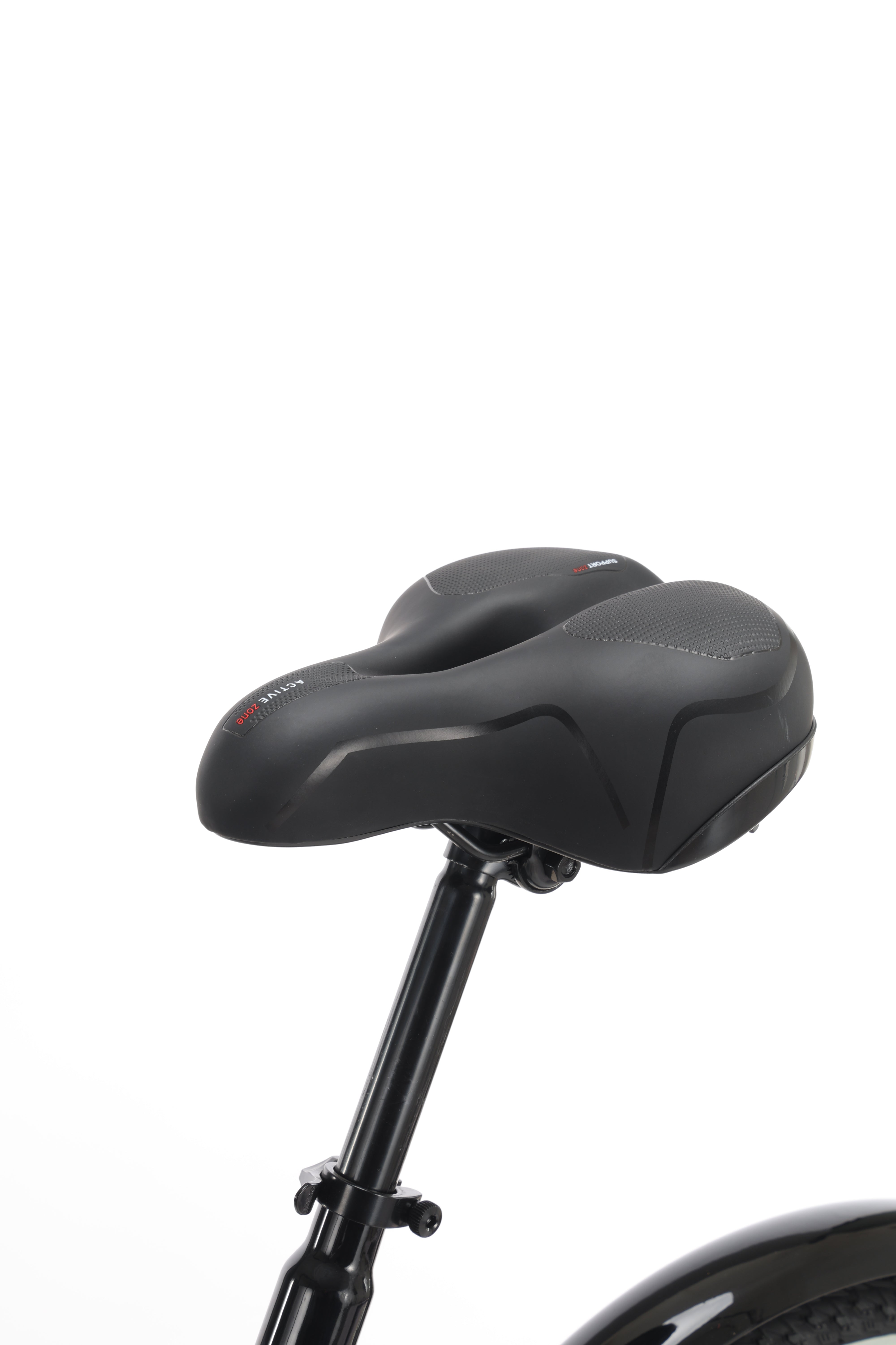 700x38C hybrid tires with front suspension absorb shocks, offering comfort and control on rough roads.