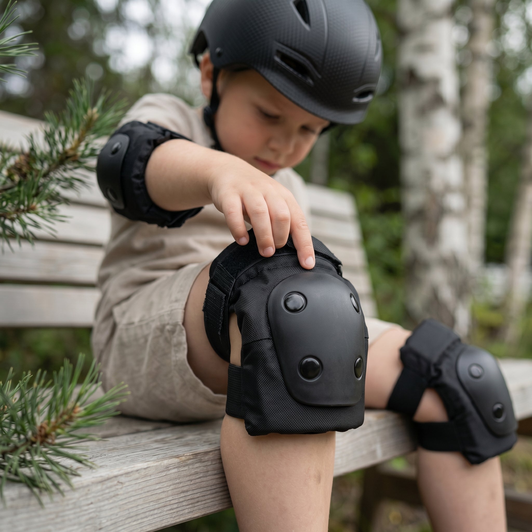 CHANTY Børnehjelm + Beskyttelsessæt – Sort
